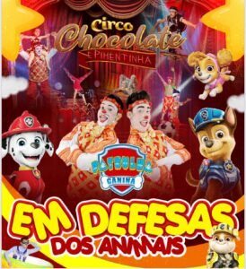 Dinâmicos, criativos e envolventes, os palhaços Chocolate & Pimentinha e a Patrulha Canina em Defesa dos Animais é um espetáculo educativo, uma forma criativa de conscientizar sobre direitos e bem-estar animal. Aborda temas como, maus-tratos, respeito e responsabilidade. Com isso, pretendemos sensibilizar e informar a plateia sobre a importância da biodiversidade e o nosso papel na construção de um mundo mais justo para todas as espécies.